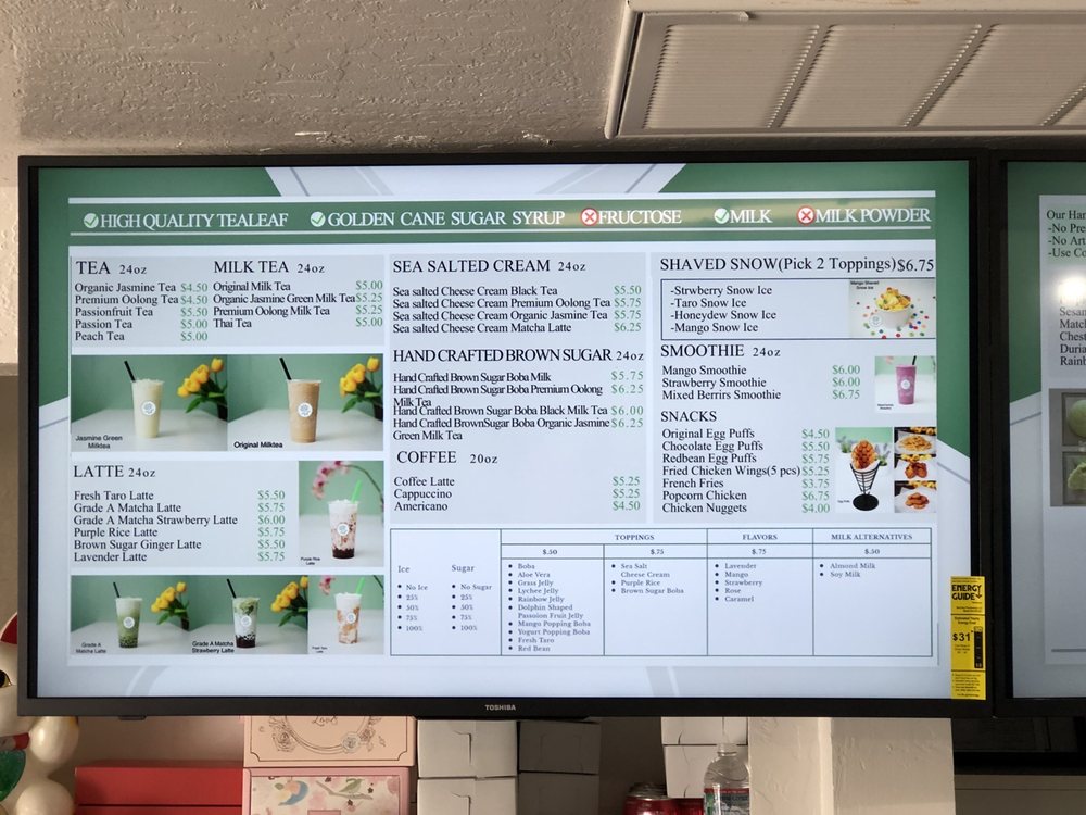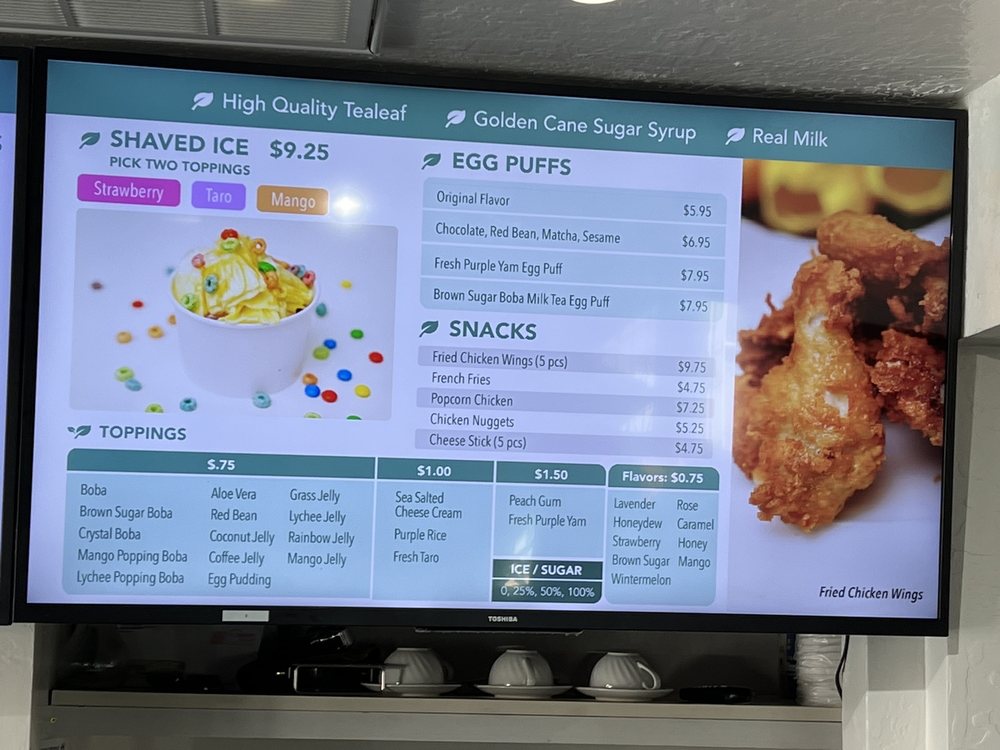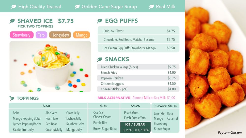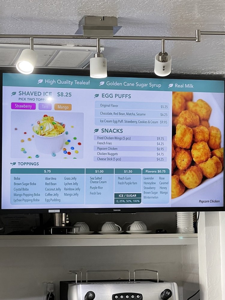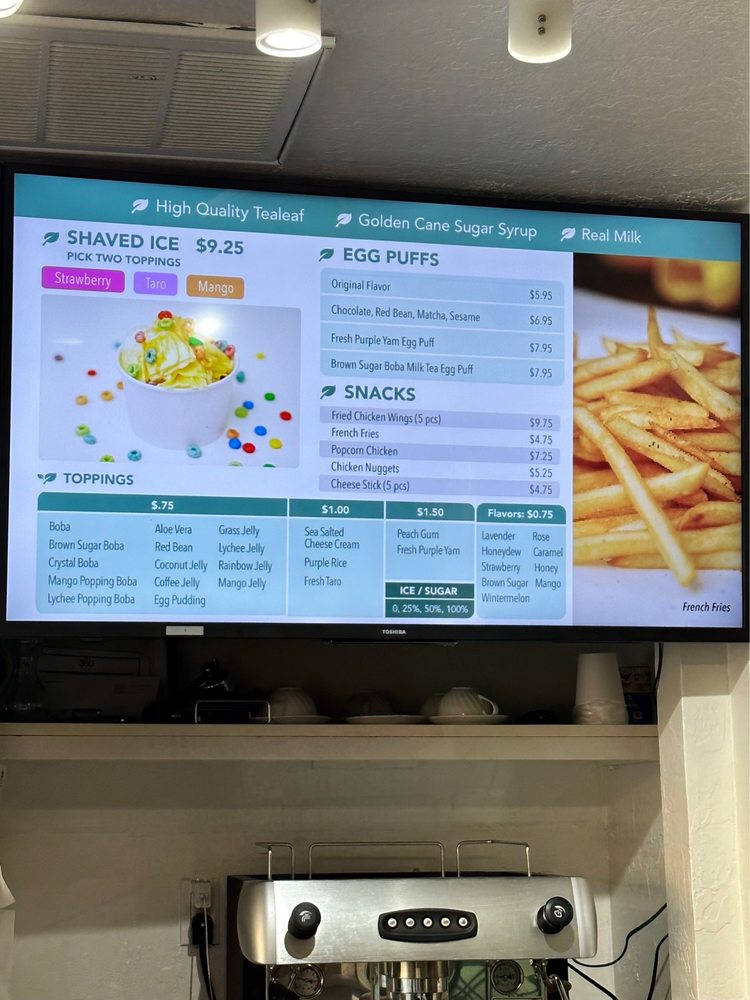 Tea So, located in Castro Valley, CA, offers a wide variety of desserts, bubble tea, coffee, and tea options. With amenities like delivery, takeout, wheelchair accessibility, and free Wi-Fi, Tea So provides a comfortable and convenient dining experience. Their menu features unique drinks such as Grapefruit Guava Tea, Passionfruit Slush Tea, and Fresh Taro Latte. Customers have praised the friendly service, clean store, and the opportunity to win prizes from claw machines. Although prices are on the higher side, the quality of the drinks and ingredients like fresh mangoes make it worth the cost. Overall, Tea So is a great spot to enjoy delicious and healthy beverages in a welcoming environment.